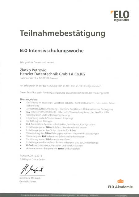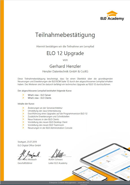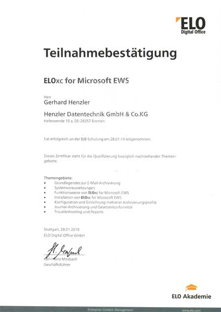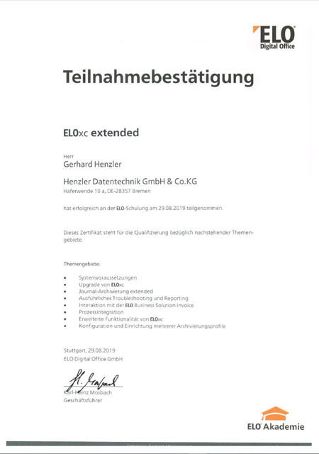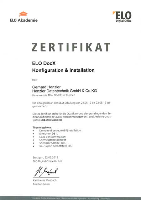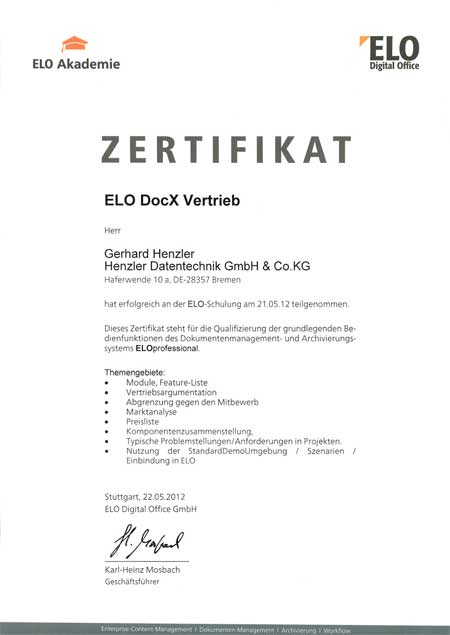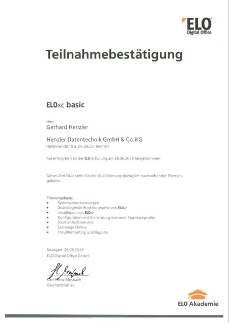 Henzler Datentechnik ist der Spezialist für Dokumenten-Management und Digitale Archivierung mit ELO. Dank praxisnaher Trainings und ständiger Weiterbildung verfügen wir als ELO Business-Partner über spezialisiertes Know-how im ELO-Produkt- und ECM-Bereich.
